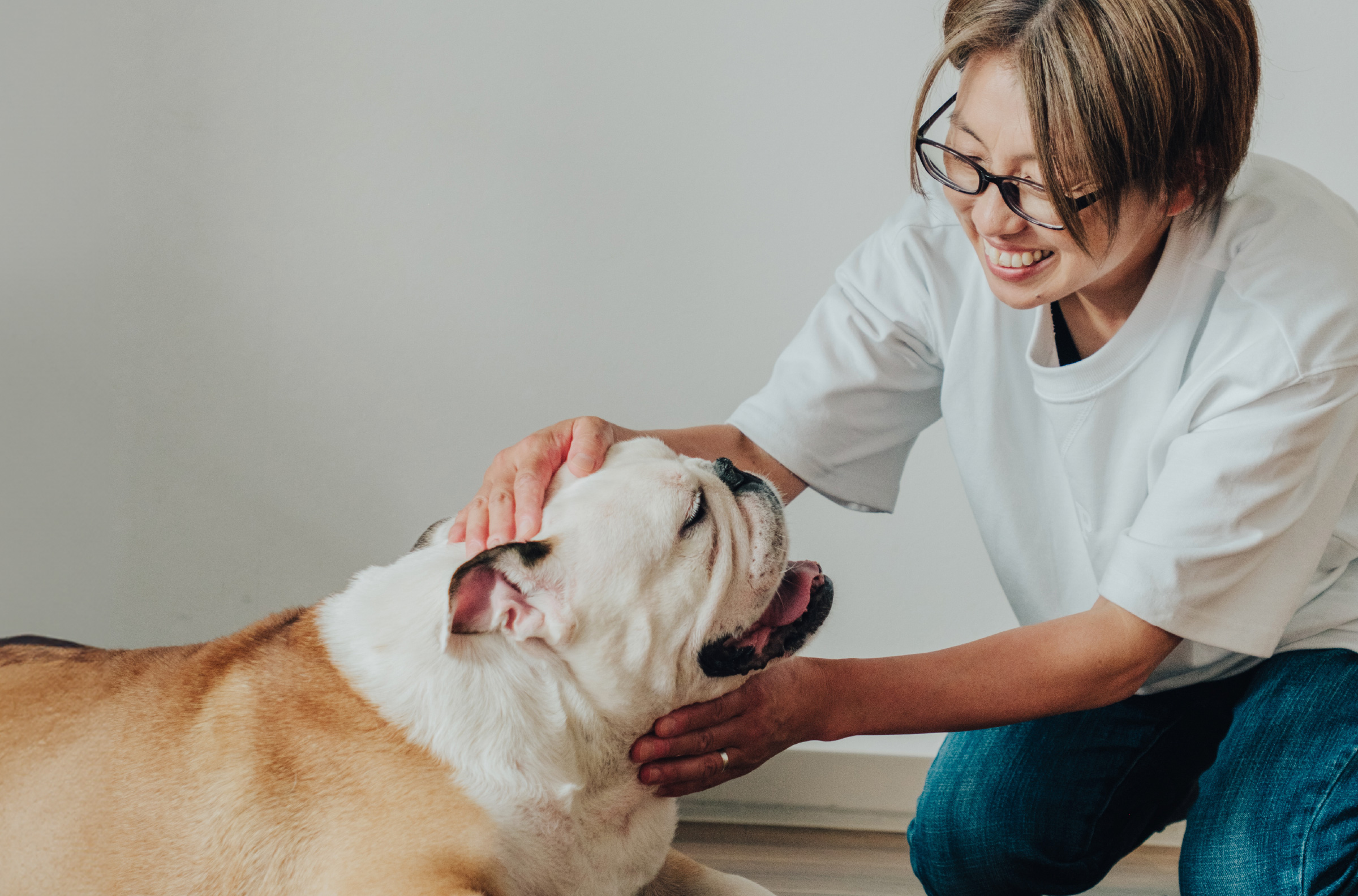 鼻ぺちゃブヒ系が大好きで、プライベートでは、ブルドッグとアメリカンブリーと一緒に生活しています。
